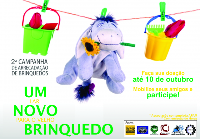Atenção alunos de Ciência Da Computação e Análise e Desenvolvimento de Sistemas Estamos lembrando a todos que a campanha de Doação de brinquedos da APAM de Ponta Grossa, entidade que agrega apenas meninas já iniciou. Este evento começou no período de 25/09/2012 a 19/10/2012 até as 20h00min e valerá como atividade complementar. Não deixe de participar!