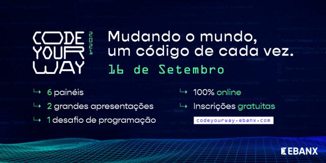 Dia 16 de setembro, às 17h30, o Code Your Way vai ao ar com diversos conteúdos para ampliar seu repertório com a presença de profissionais incríveis e painéis de conteúdos inéditos sobre Software Architecture & Design, Data Science, Jornada Empreendedora na Tecnologia, Cloud Computing, Mobile e InfoSec.
