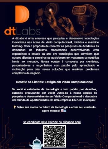 Interessados em realizar estágio em VISÃO COMPUTACIONAL, favor acessar o arquivo anexo com maiores informações.